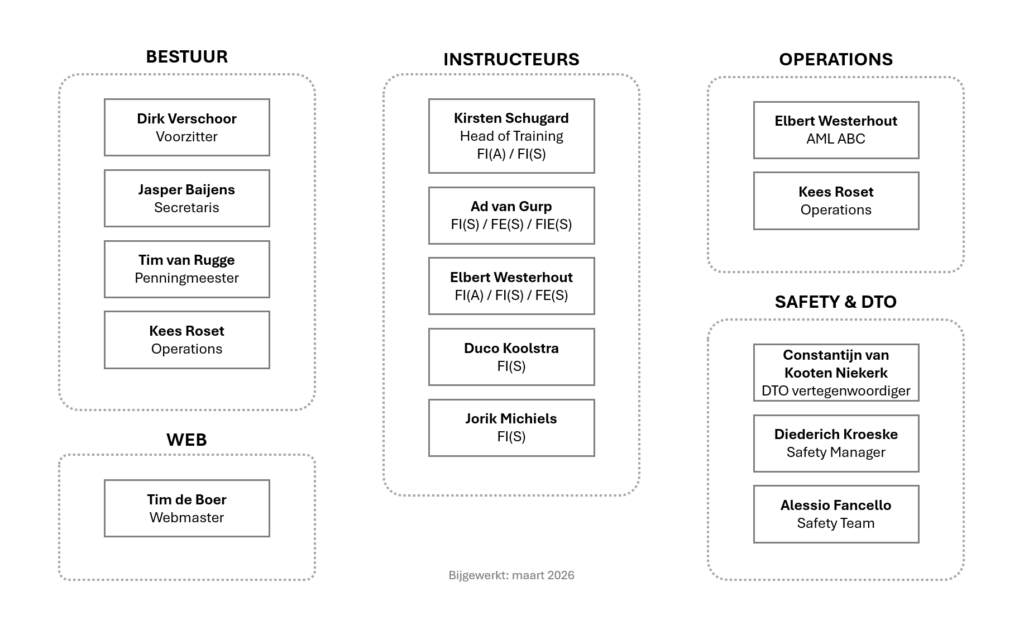 Ook hebben we afgesproken dat we in aanvulling op de wettelijke regelgeving allemaal jaarlijks een checkvlucht met een instructeur maken. Niet om je het vuur na aan de schenen te leggen maar gewoon samen weer even wat oefeningen doen. Dit is ook een mooie gelegenheid om eventuele vragen aan de instructeur voor te leggen (hoewel dit natuurlijk het hele jaar kan).